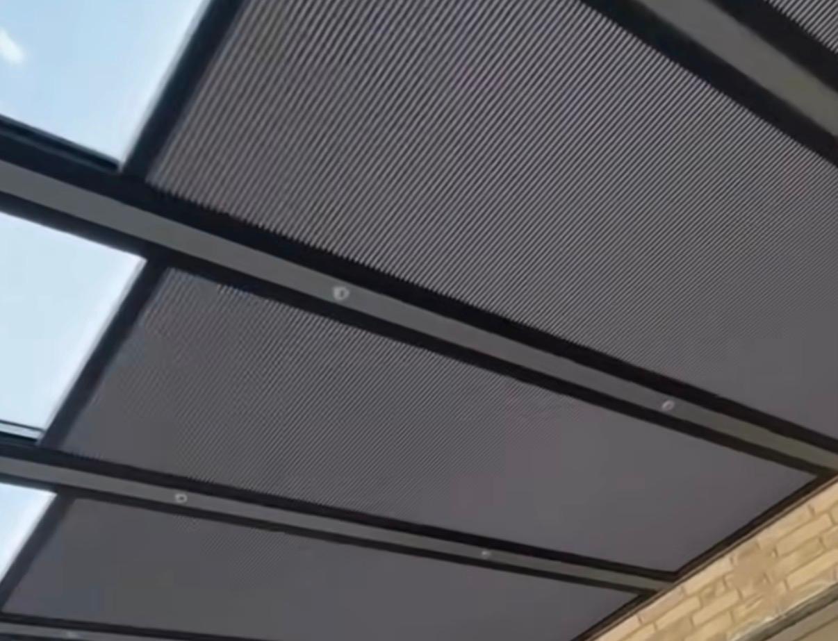 Automatische Honeycomb zonwering voor veranda – voor een schaduwrijke ruimte thuis.